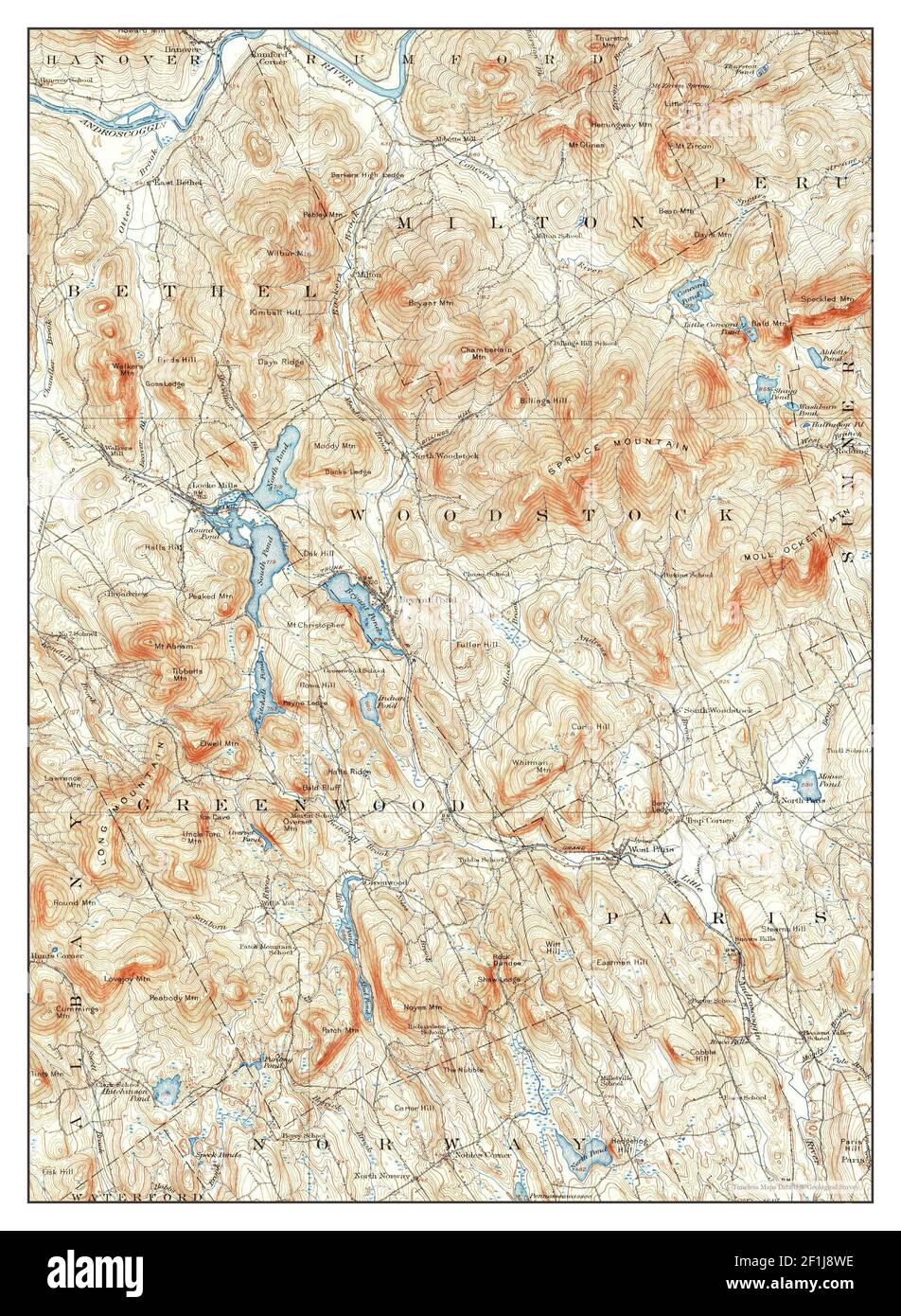 Bryant Pond, Maine, map 1914, 1:62500, United States of America by