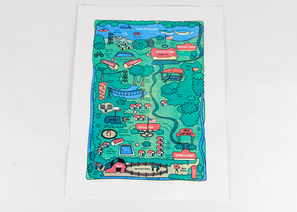 Large Hand Printed Map of YMCA Camp Ernst | EBTH