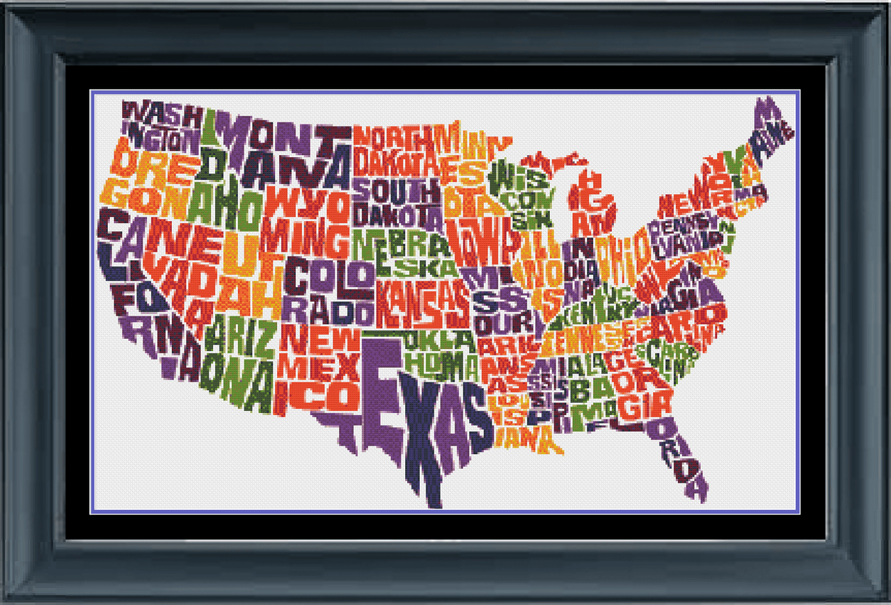 United States Map Cross Stitch Pattern Modern Colorful Map Cross