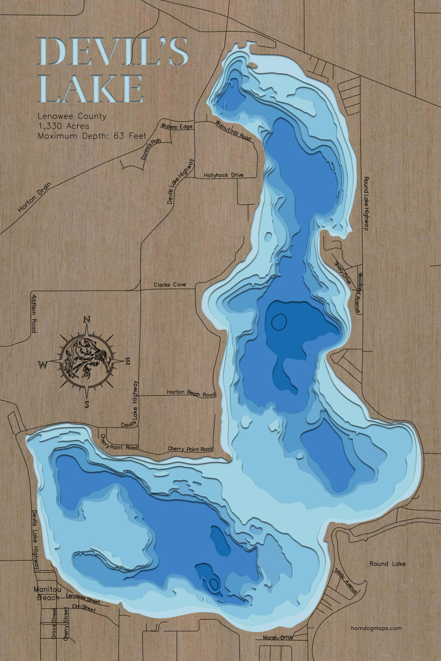 Devils Lake Round Lake, MI 3D Wood Map Custom Nautical Map, Cabin