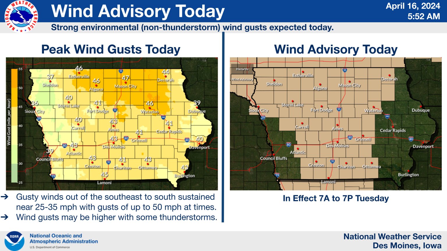 NWS Des Moines on X: “Gusty winds are also expected today with non
