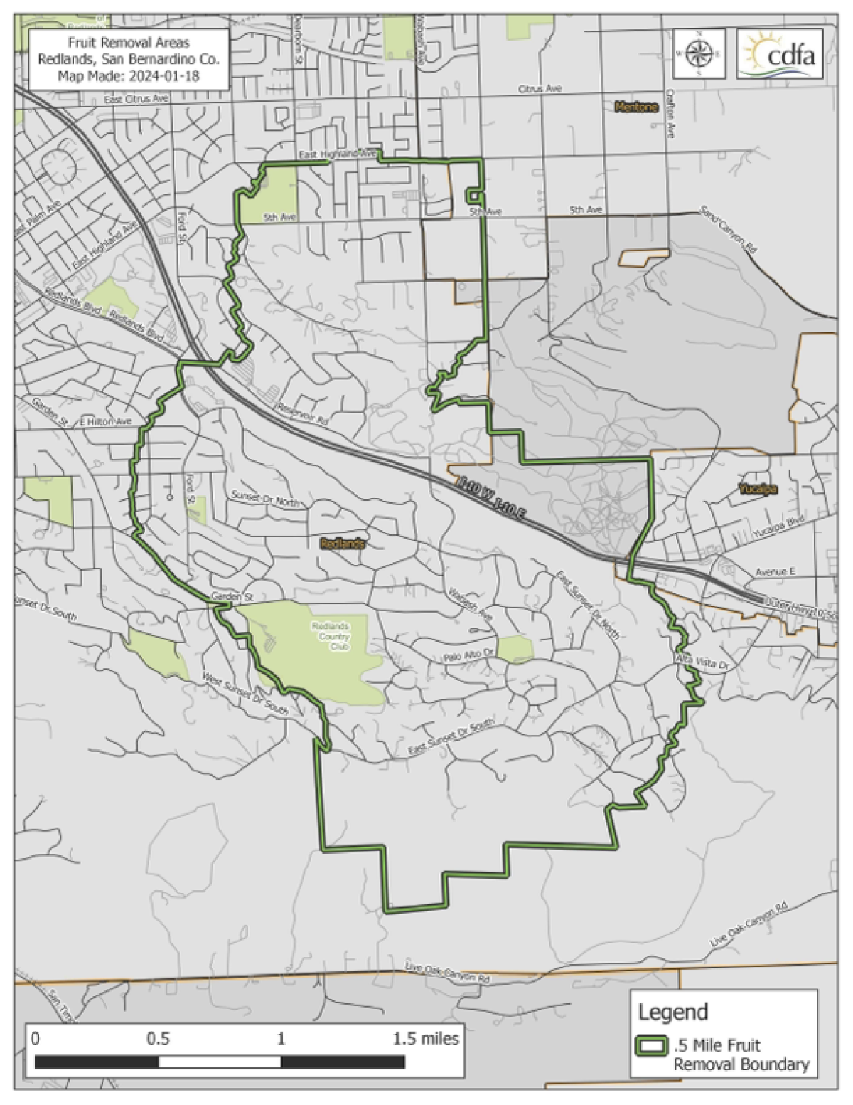 Redlands Fruit Removal Map – In the latest chapter of California’s eternal struggle against harmful fruit flies, residents and business owners in Redlands will area are “asked not to remove fruit from trees themselves . Click to share on Facebook (Opens in new window) Click to share on Twitter (Opens in new window) Click to share on Reddit (Opens in new window) Click to print (Opens in new window) .