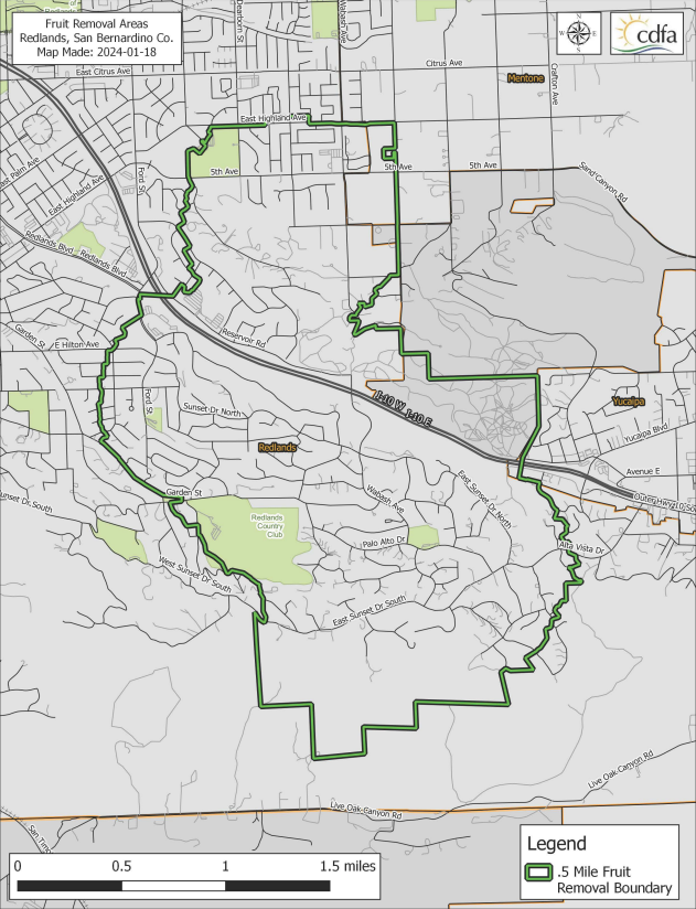 Redlands Fruit Removal Map – In the latest chapter of California’s eternal struggle against harmful fruit flies, residents and business owners in Redlands will area are “asked not to remove fruit from trees themselves . Click to share on Facebook (Opens in new window) Click to share on Twitter (Opens in new window) Click to share on Reddit (Opens in new window) Click to print (Opens in new window) .