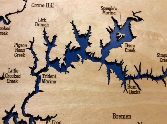 Lewis Smith Lake, Alabama, Laser Engraved and Cut Wooden Lake Map
